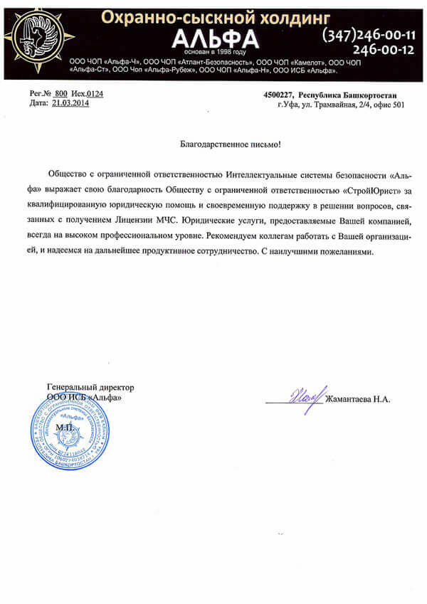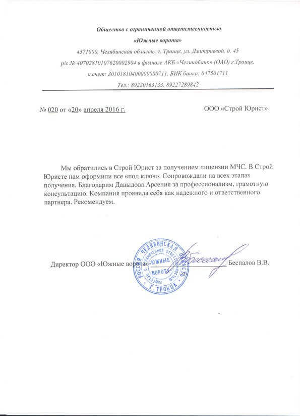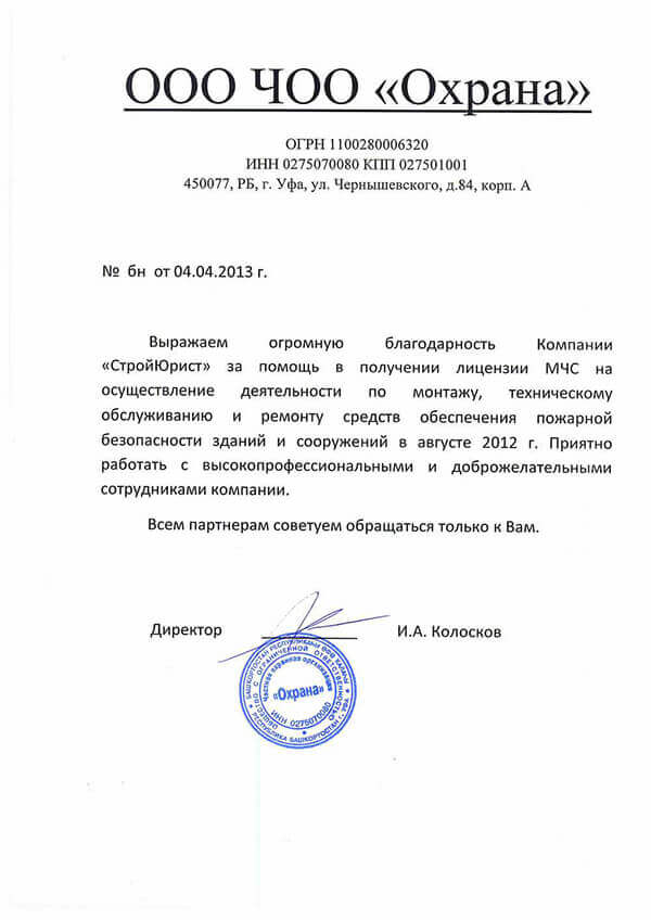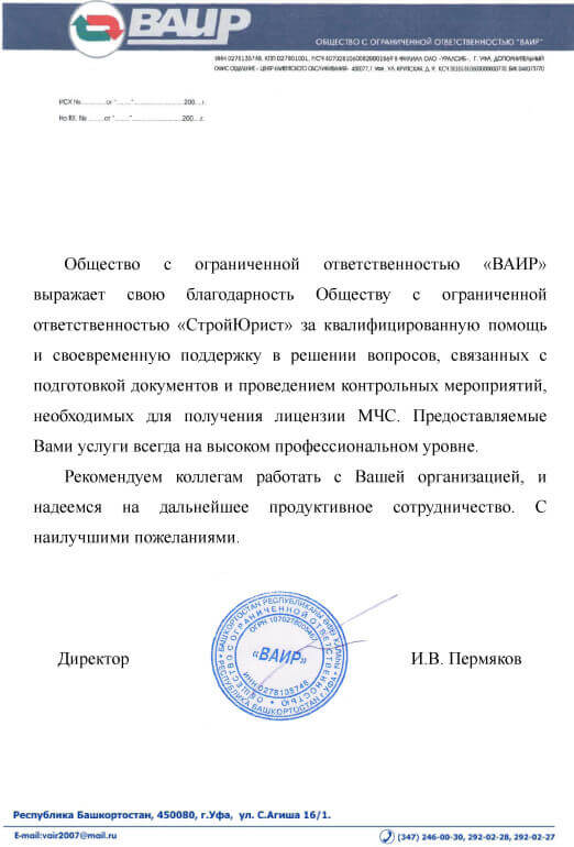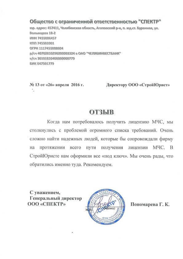 Отзывы клиентов "СтройЮрист" по лицензированию МЧС в Иркутске