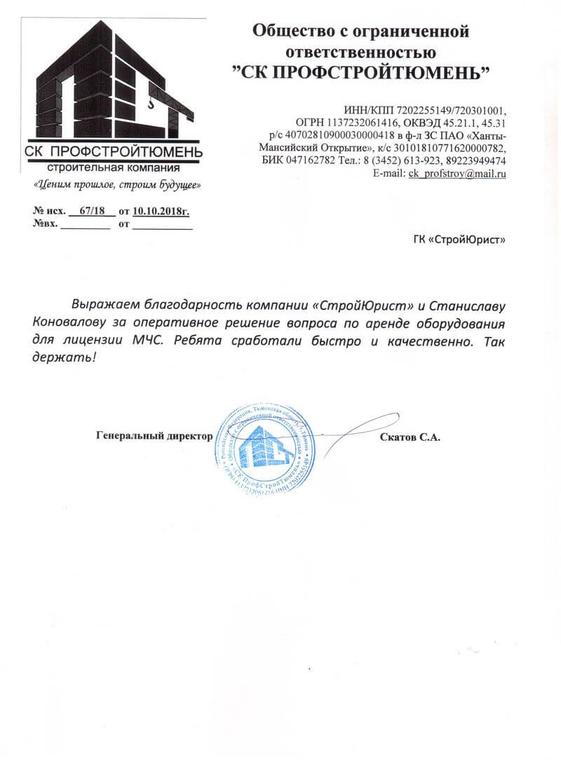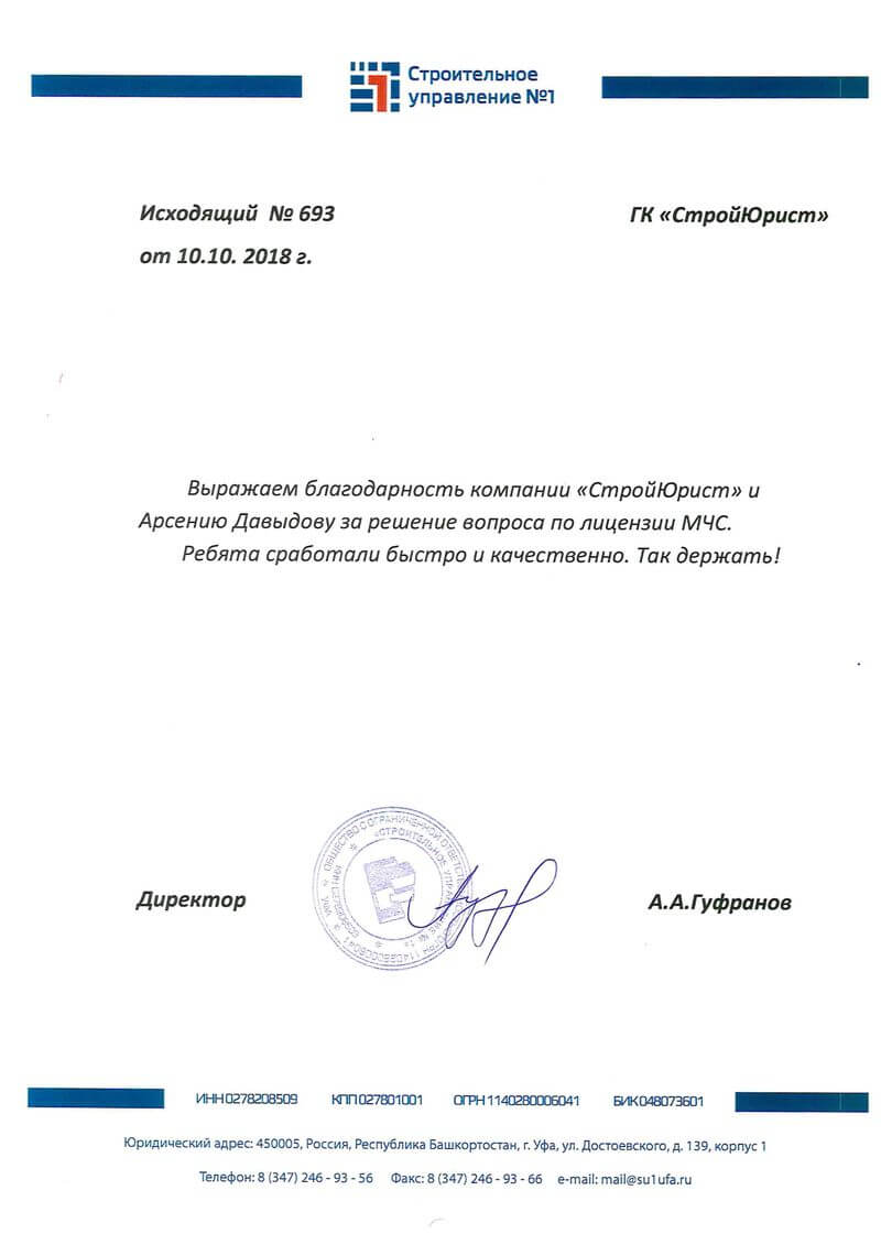 Отзывы клиентов "СтройЮрист" по лицензированию МЧС в Иркутске