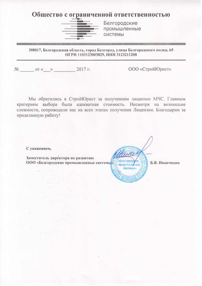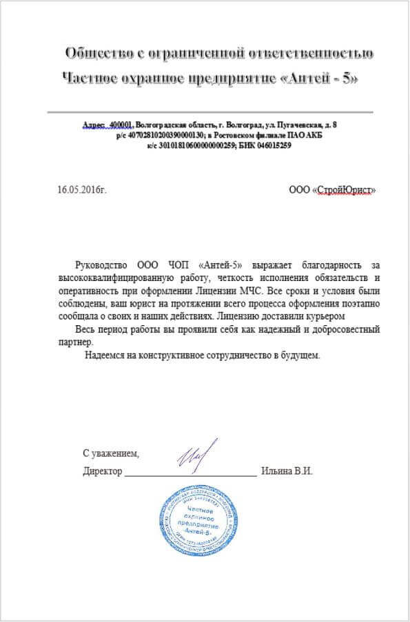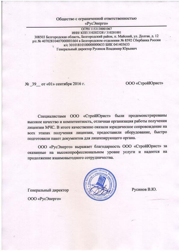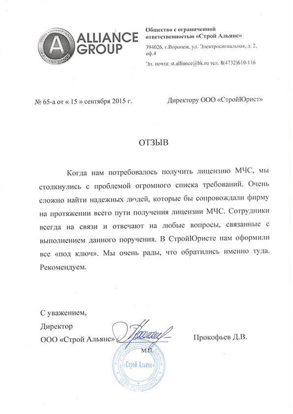 Отзывы клиентов "СтройЮрист" по лицензированию МЧС в Иркутске